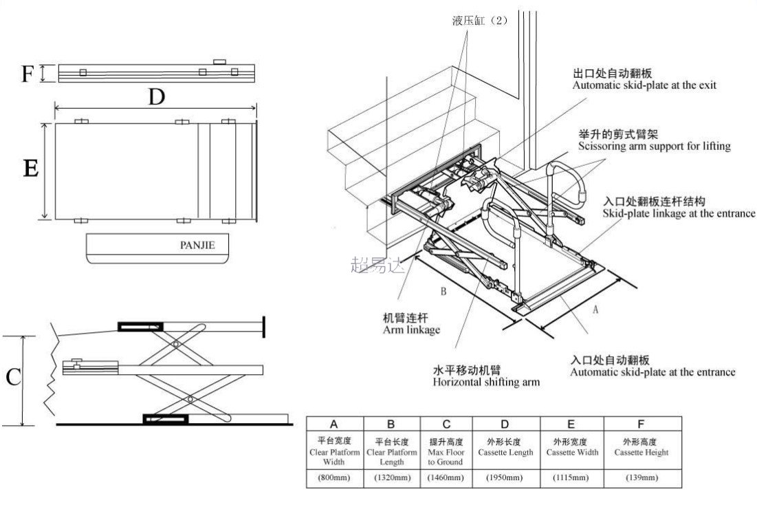 最大提升高度: MAX1460mm(升降機(jī)厚度中心線上下各730MM)
