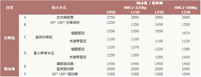 六、設計運行空間尺寸表
